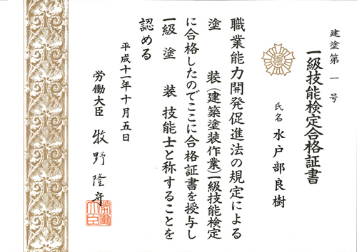 当店では、担当する現場親方は全員、一級塗装技能士です。