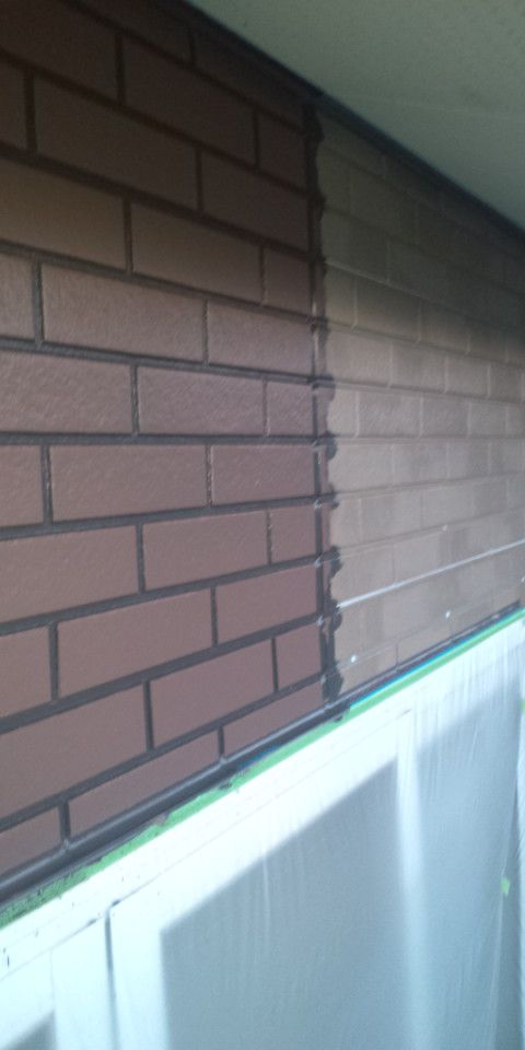 シール工事中に奥様とご一緒に決めた配色で、2トーン塗装が開始されました!