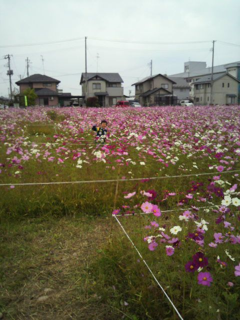 その帰り道、長男が通う中学校の裏手にある、コスモス畑へ。