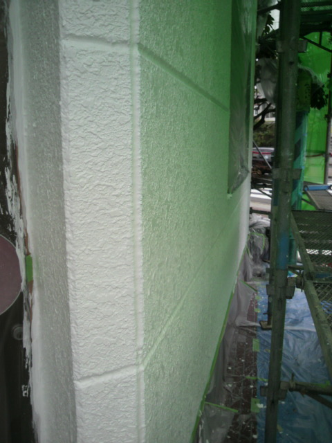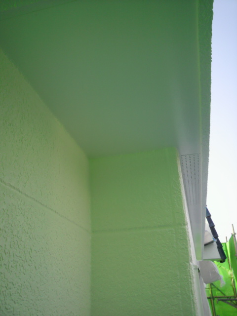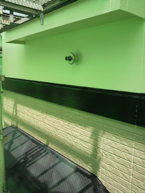 昨日最後の仕上げの伝い水防止水切りや、エアコンの配管カバーの取り付け、笠木のシール等を終え、明日、最後の点検、タッチアップをして完了となります。