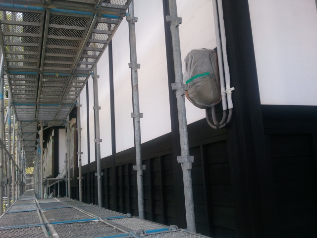 今日で大体木部の塗装は仕上がって、明日から左官職人が漆喰の補修に入ります。