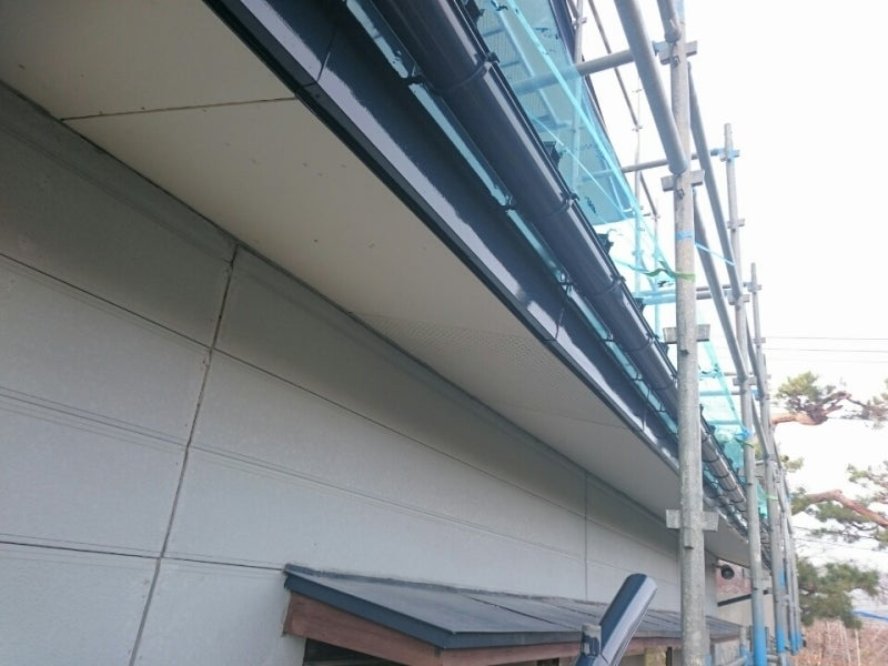 さて、中山町A様邸塗装工事の進行状況ですが、先日の晴れ間に、下処理を行っていた破風.雨樋塗装上塗りを行いました。