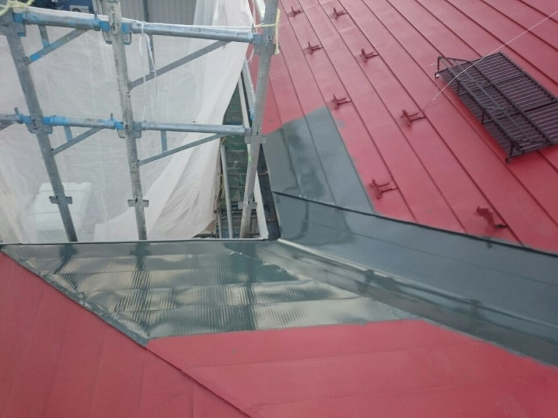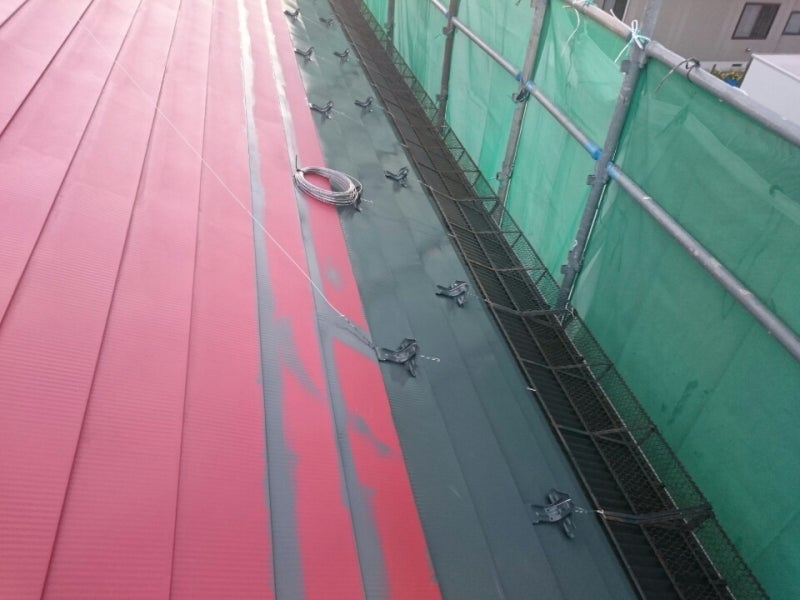本日、板金屋さんとの久しぶりの連携のためスノーストップ(雪止め)の下になる部分の屋根上塗りを行って来ました。
