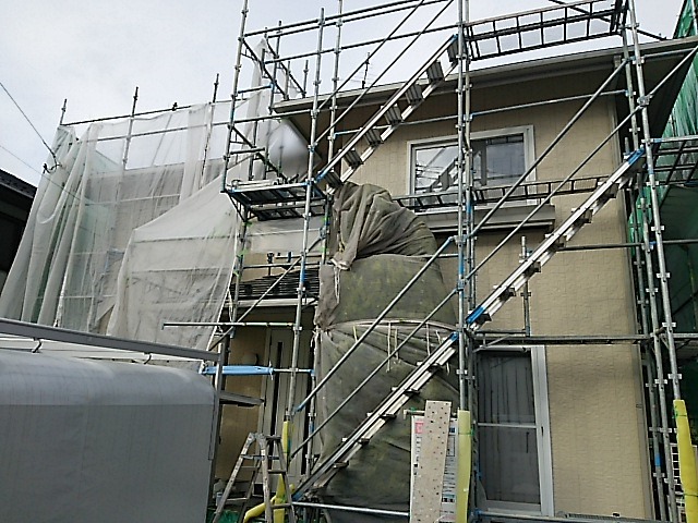 山形市内のアパートも、修繕工事が増えましてようやく塗装へ。