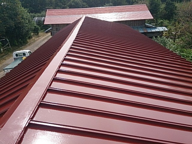 続いて4日金曜日、大江町W様邸小屋屋根塗装完工しましたビックリマーク