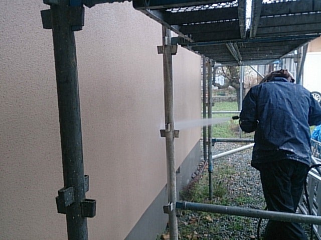 そして、今日は寒河江市A様邸にて塗装部始動(゙ `-´)/