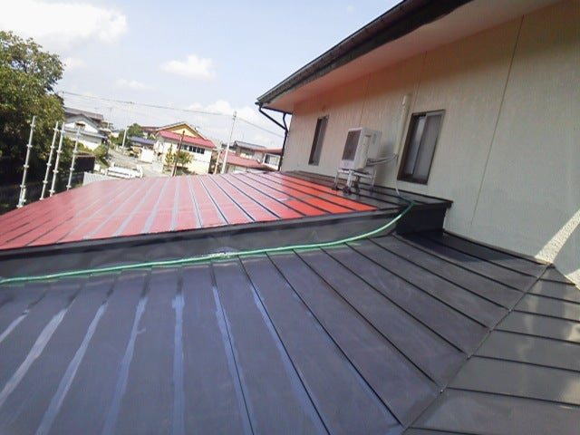今回は、前回の屋根塗装の密着状況が悪くほぼ全面錆止め塗装を施工しました。