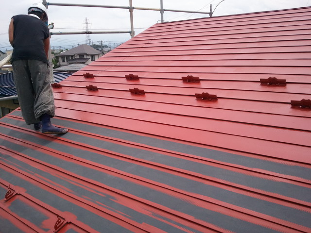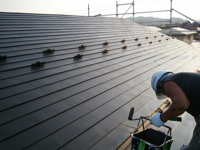 遮熱塗装の屋根も仕上げに取り掛かっています。