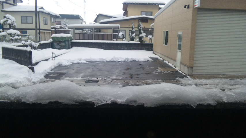 駐車場の一部は、子供が雪だるま☃をつくれるように残しておきました。