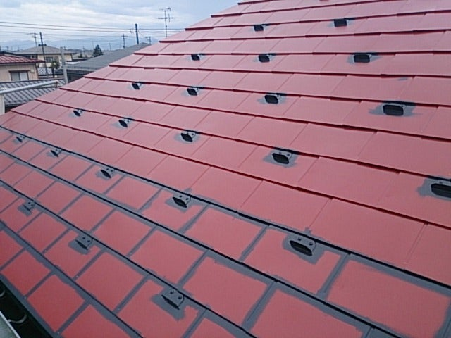 そして、昨日までの晴れ間に進めていた屋根塗装。
