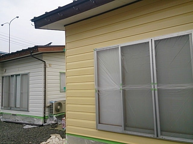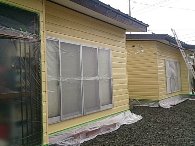 本日、H様貸家改修工事では、晴れ間をねらい三棟中二棟の外壁塗装は完了しました。