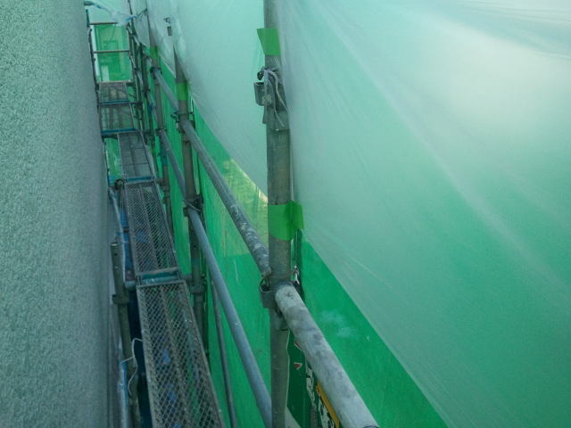 続いてこちらも中心街にある、店舗併用住宅の塗り替え工事現場。