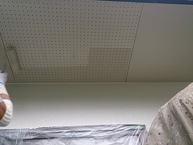 そして、本日外壁補修部(モルタル)にて戻し吹きという作業を行ってきました。