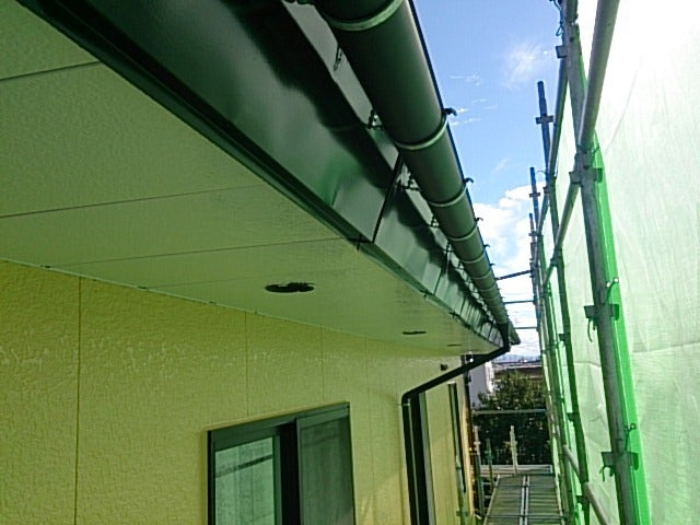二階雨樋取り付けは、月曜日に完了しているため、明日で板金工事は完了です。