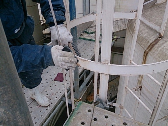 土曜日、鉄部ケレン、タンク部洗浄を行い、(今回のタンクは樹脂製の防水材の上に塗装を行っているタンクの再塗装のため洗浄でした)