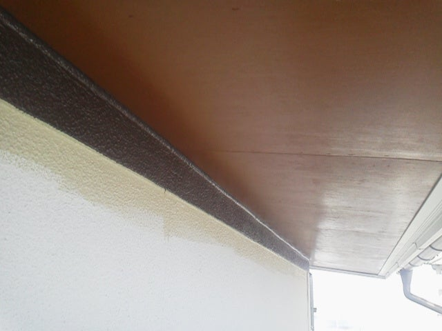 現場、他会社により施工方法はまちまちですが、手塗りの場合は、材料、状況によって、なるべく後から上塗り後の外壁を汚さない様に、一番上(今回は軒天)から塗装するということが可能です。