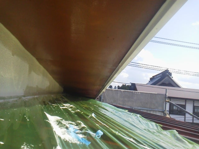 上の写真一枚目の様に、今回は、軒天を先に塗装させて頂きました。