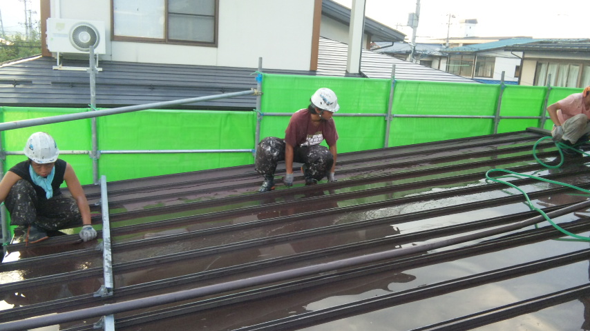 夕方立ち寄ったら、屋根の手洗い作業中でした。