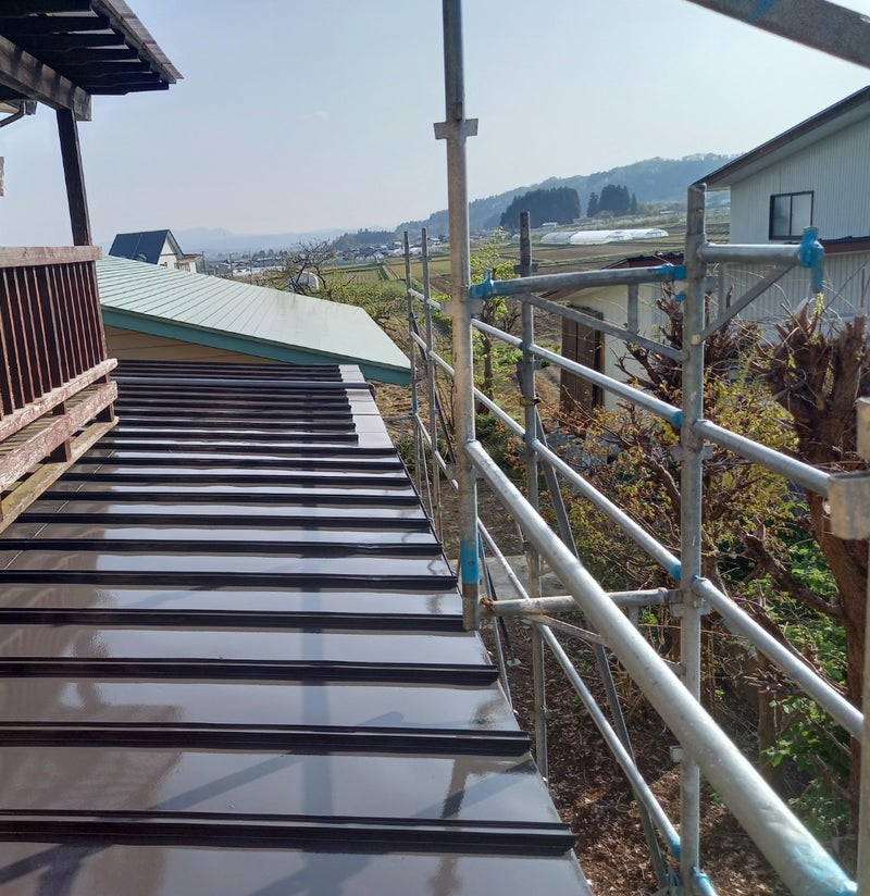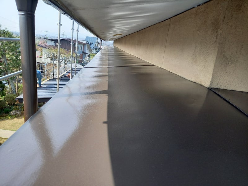 明日からの降雨予報前に屋根塗装・雨樋新設工事が完了し、一安心(*´-`)