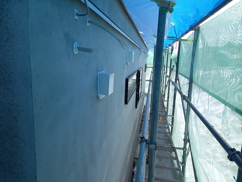 寒河江市I様邸新築塗装工事。継続中。