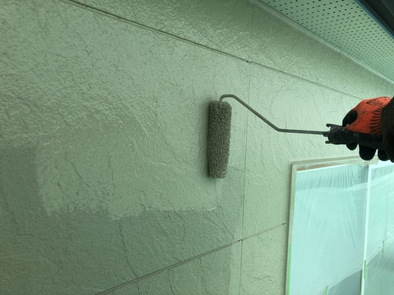 現在1階外壁塗装下塗り施工中。