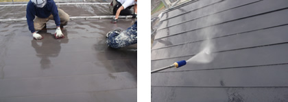 洗わずに塗ることは100%ありません。特に金属屋根の場合洗浄の良し悪しが耐久性の良し悪しに直結します。