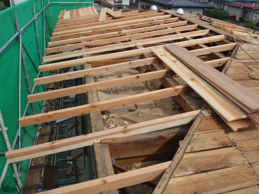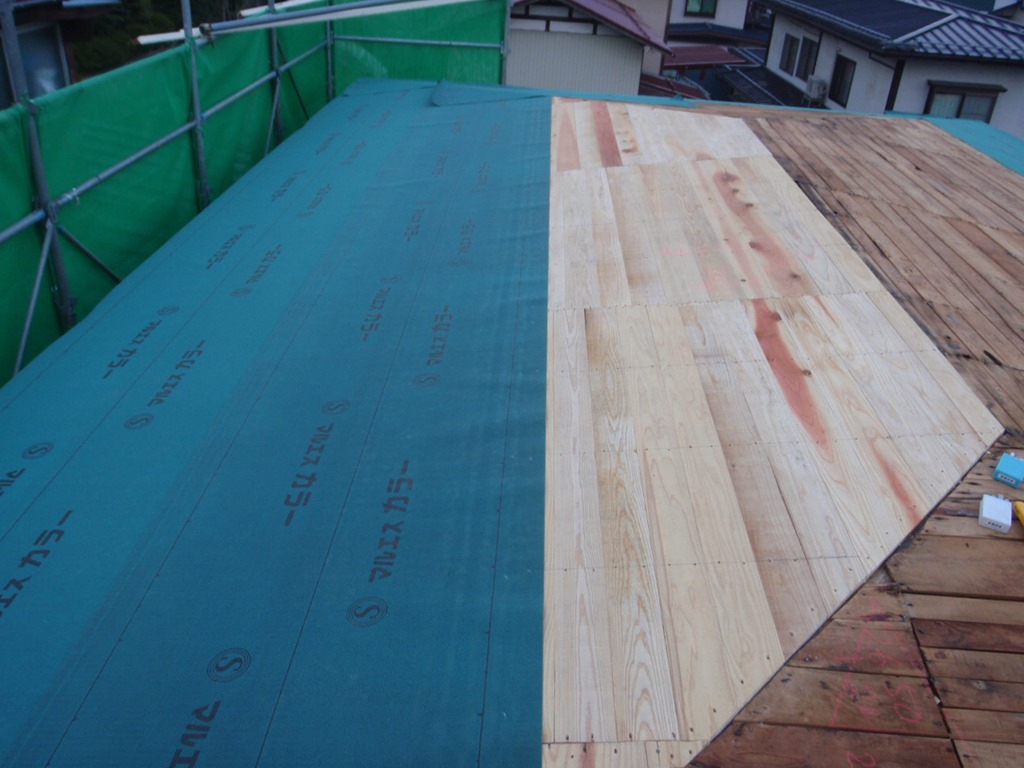 一階の屋根は塗装になりますが、二階の屋根は傷み具合の関係で葺き替えです。