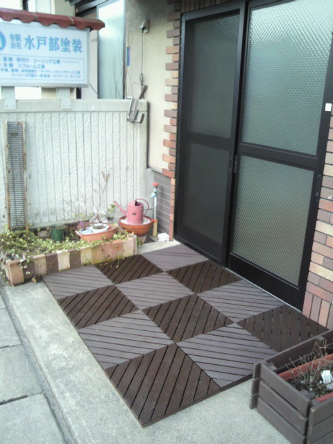 シーリング隊長こんばんは シーリング隊長です。 会社の休憩所の入り口です。もう少し暖かくなると後ろの花壇に花をたくさん植えて、きれいにします。(^^ 事務所の入り口や、自宅の玄関よりもきれいなので、たまに間違って入って来られる方...